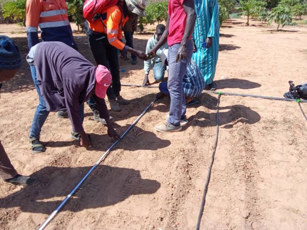 La formación, impartida por Paul Sene, técnico agrícola miembro de la Asociación Mbokatoor y coordinador de actividades agrícolas, se centró en la instalación y gestión eficiente del sistema de riego "gota a gota". Esta técnica permite un uso más racional y eficiente del agua, lo cual resulta fundamental para mejorar significativamente el rendimiento de cultivos como pepinos y pimientos, productos esenciales en la economía local.